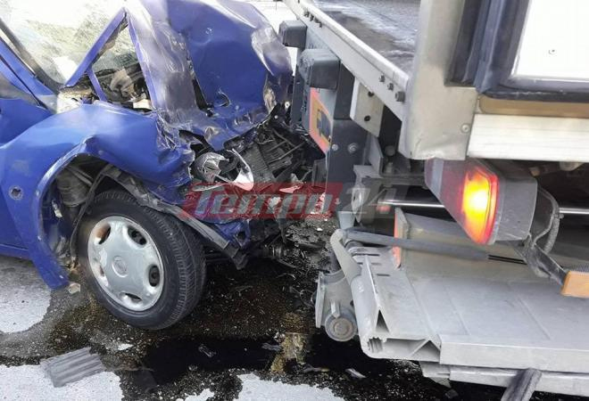 Στο πίσω μέρος σταθμευμένου φορτηγού επί της οδού Αθηνών στο Ρίο Πατρών, στο ύψος του πρώην δημαρχείου, προσέκρουσε αυτοκίνητο, περίπου στις 09.00 το πρωί της Τετάρτης.