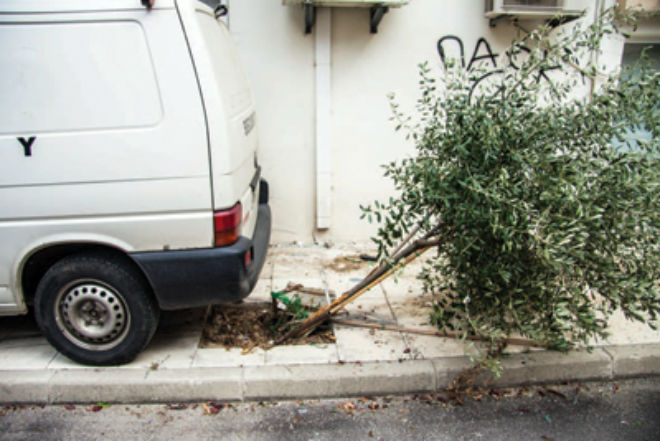 Την τρελή πορεία τους έκοψαν δέντρα που βρίσκονταν πάνω στο πεζοδρόμιο, ενώ, στη συνέχεια, τα οχήματα έπεσαν πάνω στην τζαμαρία του κέντρου.