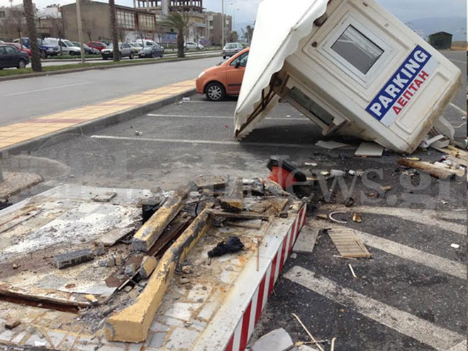 Βομβαρδισμένο τοπίο θύμιζε σήμερα το πρωί ο χώρος στάθμευσης στην παραλιακή λεωφόρο του Ηρακλείου, απέναντι από το εμπορικό κέντρο Τάλως.