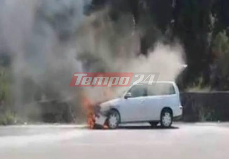 Η φωτιά προκλήθηκε στο χώρο της μηχανής και ενώ το αυτοκίνητο βρισκόταν εν κινήσει στο ρεύμα κυκλοφορίας προς Πάτρας, στο ύψος των Καμινίων.