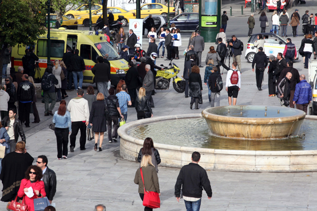 Δύο διασώστες του ΕΚΑΒ που έφτασαν με μοτοσυκλέτα στην πλατεία Συντάγματος δεν μπόρεσαν να προσφέρουν καμία βοήθεια στον άνδρα και αρκέστηκαν να διαπιστώσουν το θάνατό του.