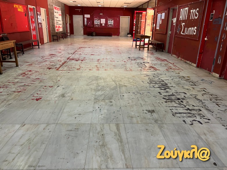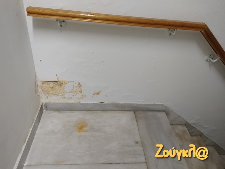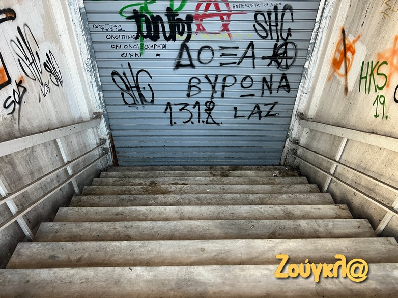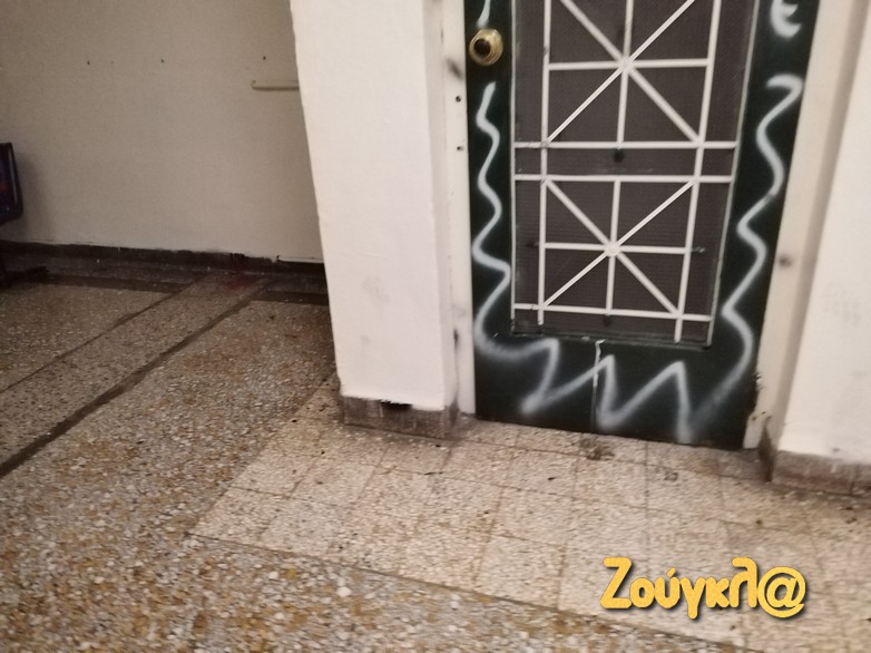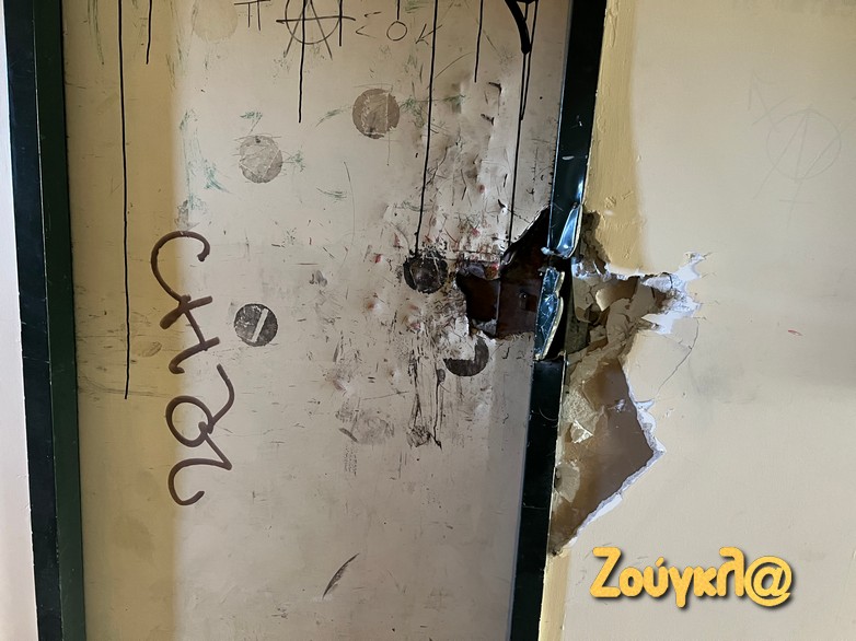 - Στο υπόγειο η πόρτα του ανελκυστήρα που ήταν βαμμένη με σπρέι