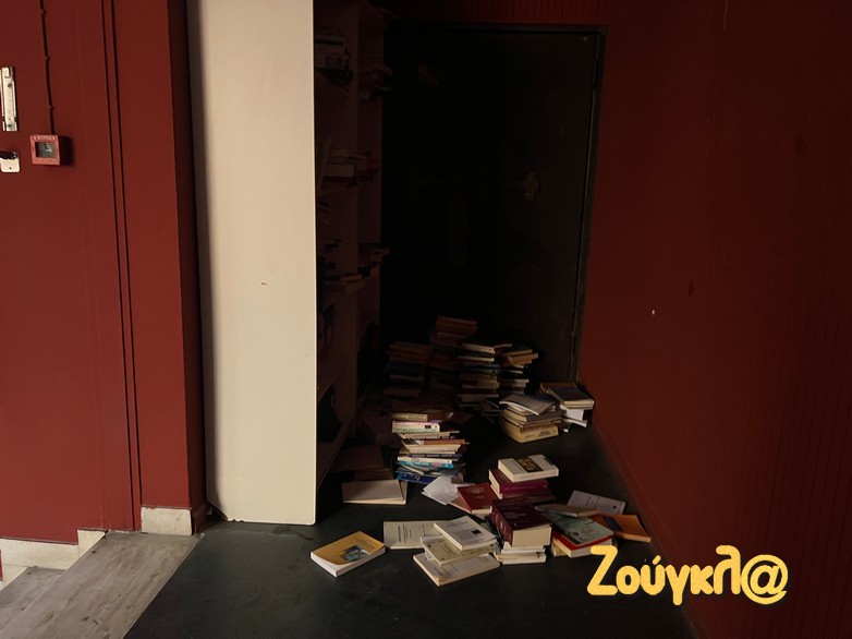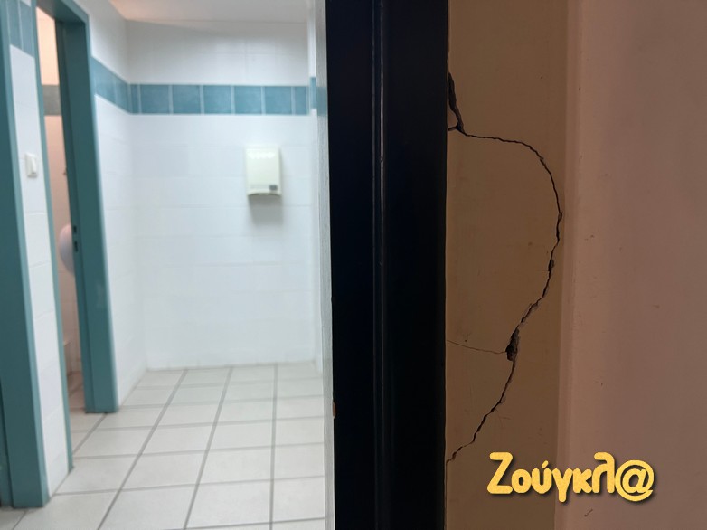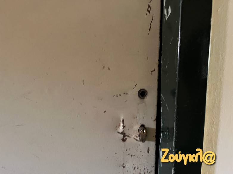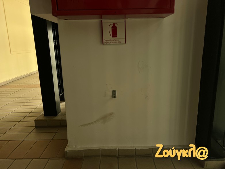 - Στο υπόγειο η πόρτα του ανελκυστήρα που ήταν βαμμένη με σπρέι