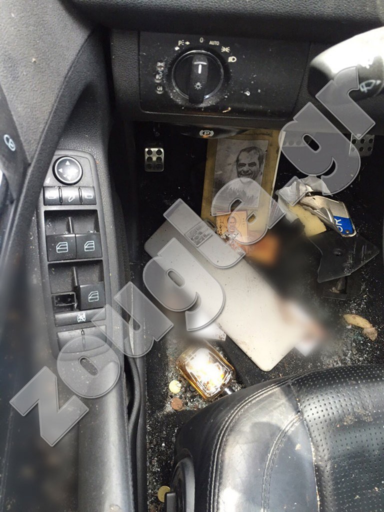 Η εικόνα από το εσωτερικό του αυτοκινήτου προκαλεί σοκ. Είναι γεμάτο από προσωπικά αντικείμενα του αδικοχαμένου τραγουδιστή: εικόνες του Αγίου Νικολάου βρίσκονται σε διάφορα σημεία, φυλαχτά για το «μάτι» και κομποσκοίνια, ενώ στα πεντάλ του οδηγού είδαμε ένα βιβλίο για τον Στέλιο Καζαντζίδη.