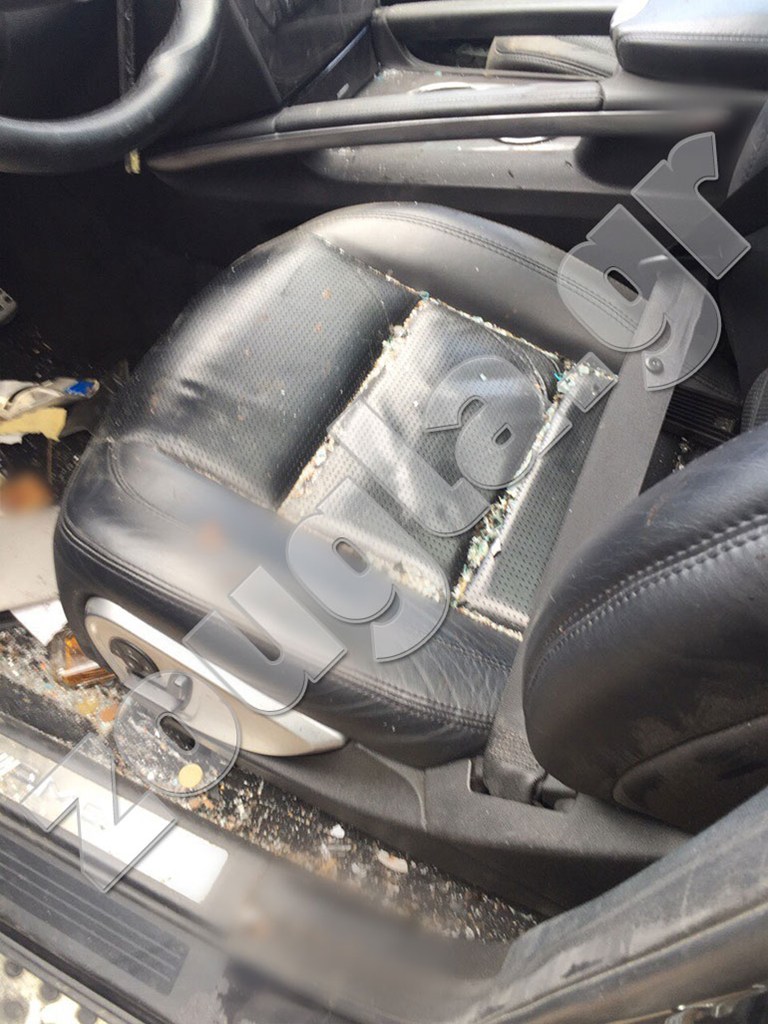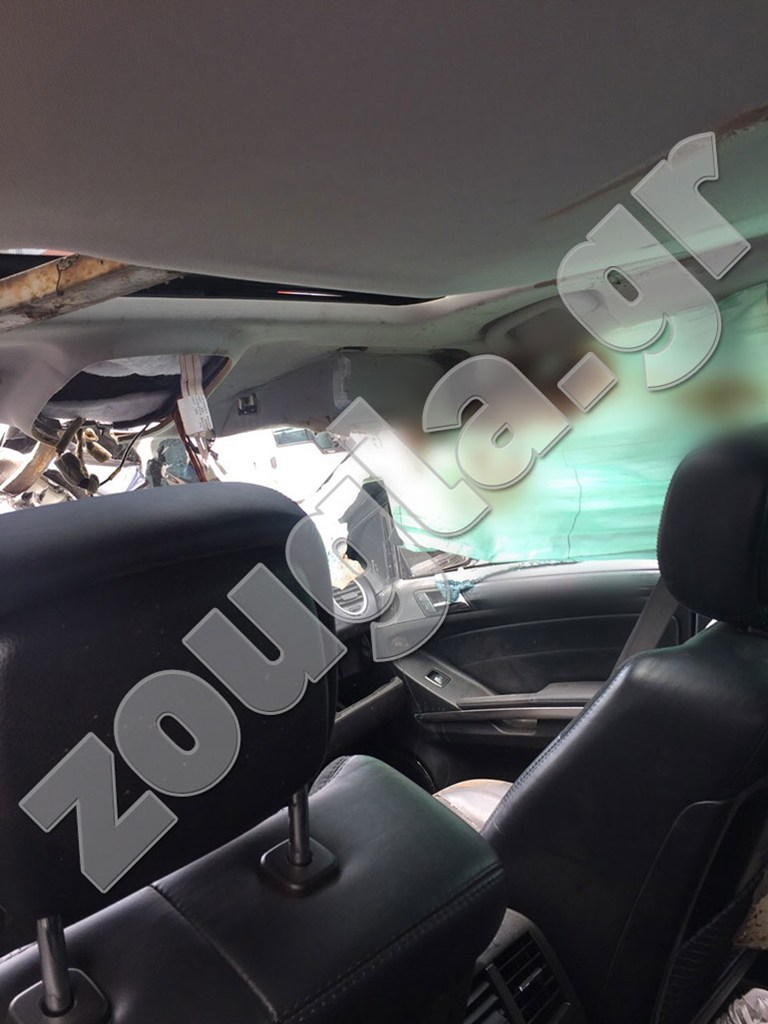 Μέσα στα συντρίμμια του αμαξιού φαίνονται ακόμα τα σημάδια από τους τραυματισμούς και τον μοιραίο θάνατο εκείνου του πρωινού στη Βουλιαγμένης… Στους πλαϊνούς αερόσακους που έχουν ανοίξει από την σφοδρή σύγκρουση υπήρχαν σημάδια από την επαφή με τους επιβάτες του μοιραίου τζιπ.