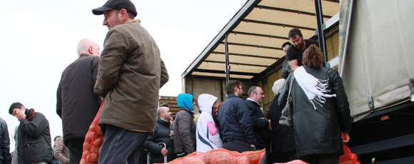 H γιορτή ξεκίνησε. Από νωρίς, εκατοντάδες καταναλωτές καταφτάνουν στο προκαθορισμένο σημείο διανομής της πατάτας Νευροκοπίου από τους παραγωγούς, ανταποκρινόμενοι στην πρωτοβουλία της zougla.gr.