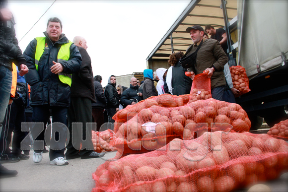 Οι παραγωγοί διανέμουν από τις 08:00 το πρωί 150 τόνους πατάτας στους καταναλωτές, οι οποίοι φρόντισαν μέσω της ηλεκτρονικής φόρμας της zougla.gr να πραγματοποιήσουν τις παραγγελίες.