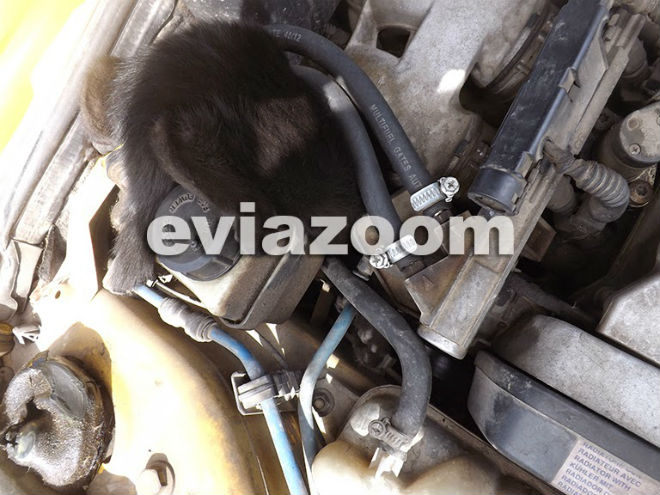 Μία γάτα είχε εγκλωβιστεί ανάμεσα στα εξαρτήματα του κινητήρα. Το φοβισμένο ζώο απεγκλωβίστηκε από τους Πυροσβέστες χωρίς, ευτυχώς να τραυματιστεί.