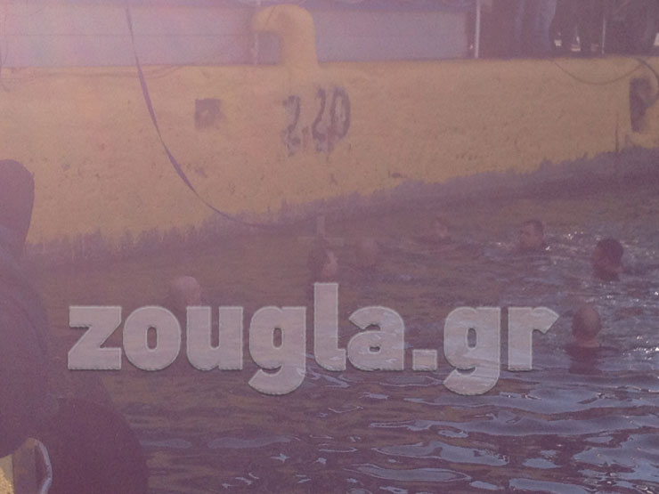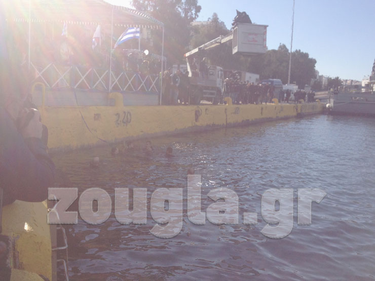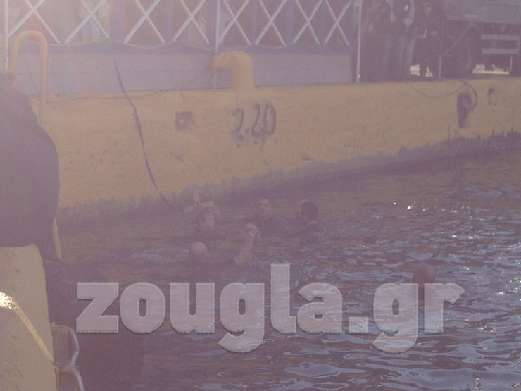 Άνδρες του Λιμενικού Σώματος έπεσαν στη θάλασσα για να πιάσουν τον Τίμιο Σταυρό.