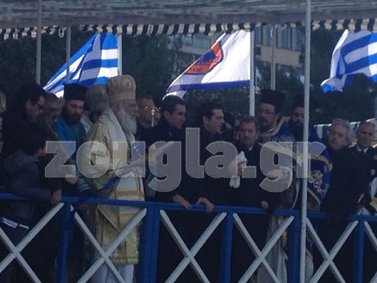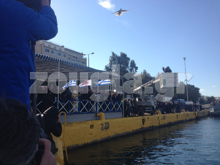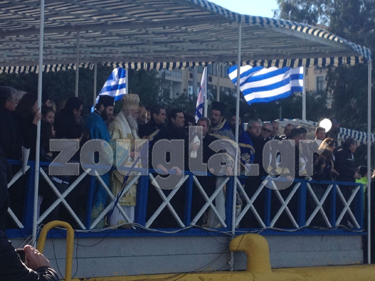 Στην αποβάθρα που βρίσκεται μπροστά από τον Ιερό Ναό Αγίου Σπυρίδωνα, στον Πειραιά, τελέστηκε ο αγιασμός των υδάτων στο πλαίσιο του εορτασμού των Θεοφανείων.