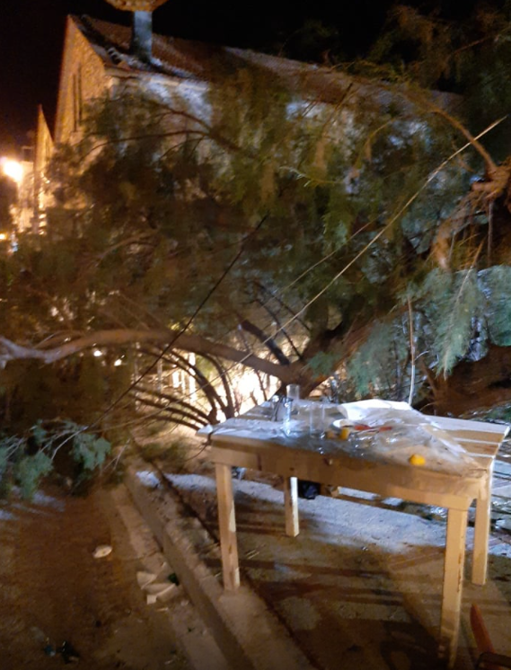 Από τύχη γλίτωσε η αντιδήμαρχος Καθαριότητας και Εθελοντισμού του Δήμου Μυτιλήνης, Δήμητρα Αλεξανδρή η οποία τραυματίστηκε στην σπονδυλική στήλη όταν το κλαδί ενός δέντρου έσπασε και έπεσε πάνω της την ώρα, που έτρωγε μαζί με τον σύζυγό της δικηγόρο Θέμη Κεφάλα και οικογενειακούς φίλους σε ταβέρνα στο Πέραμα της Γέρας.
