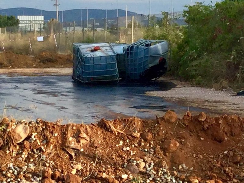 Μάλιστα πάνω στη βιασύνη τους οι ασυνείδητοι πέταξαν όπως όπως τις παλετοδεξαμενές, με αποτέλεσμα να σπάσουν και να χυθούν τα υγρά στο δρόμο, ανάμεσα από τα ελαιόδεντρα.
