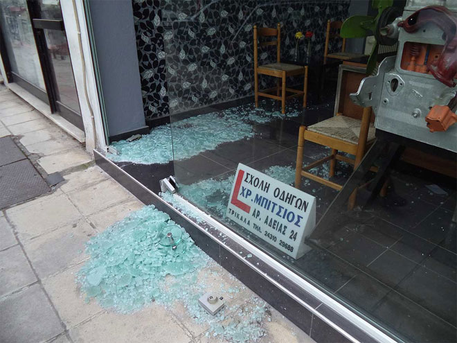 Σχολή οδηγών έβαλαν στο στόχαστρό τους άγνωστοι δράστες σήμερα τα ξημερώματα στα Τρίκαλα.