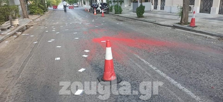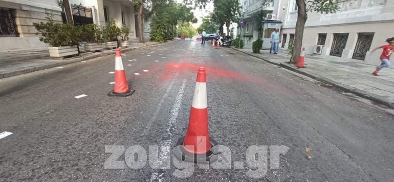 Μπογιές και τρικάκια στο κτίριο της τουρκικής πρεσβείας στο κέντρο της Αθήνας, πέταξαν άγνωστοι, το μεσημέρι της Τετάρτης.