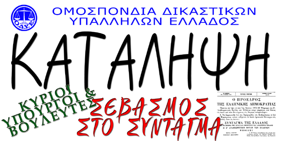 Από τη Δευτέρα ξεκινά η δράση των δικαστικών υπαλλήλων της χώρας, οι οποίοι τάσσονται «κατά του Μισθολογίου – Φτωχολογίου που η κυβέρνηση της εθνικής υποταγής επιχειρεί να επιβάλει», όπως αναφέρουν σε ανακοίνωσή τους και συμπληρώνουν: «Αρχίζει η εβδομάδα για την προσπάθεια προάσπισης του Συντάγματος της Ελλάδας από τους θεματοφύλακές του που το παραβιάζουν συστηματικά».