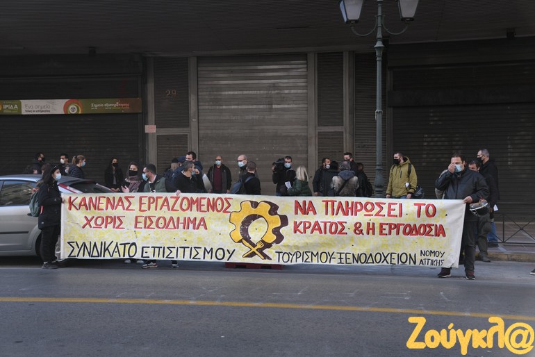 Τα μέλη των Σωματείων διεκδικούν άμεση ενίσχυση 600 ευρώ σε όλους τους εργαζόμενους του κλάδου, με προτεραιότητα σε όσους δεν έχουν λάβει καμία κρατική στήριξη, προκειμένου να μπορέσουν να περάσουν τις γιορτές.