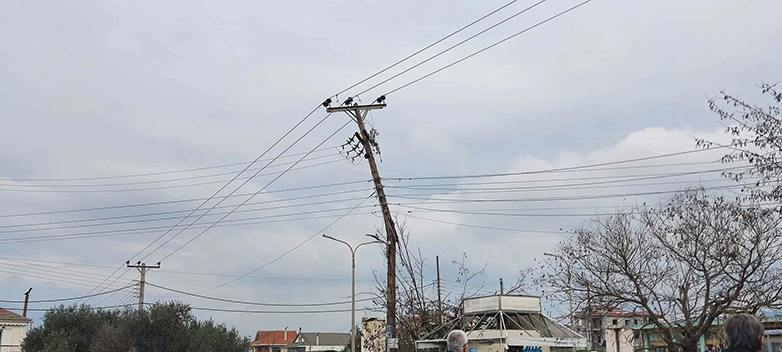 Η πτώση της πεζογέφυρας είχε ως αποτέλεσμα τα καλώδια της ΔΕΗ να τραβηχτούν και κολόνα ηλεκτροφωτισμού να κοπεί στη μέση δημιουργώντας σοβαρό κίνδυνο.