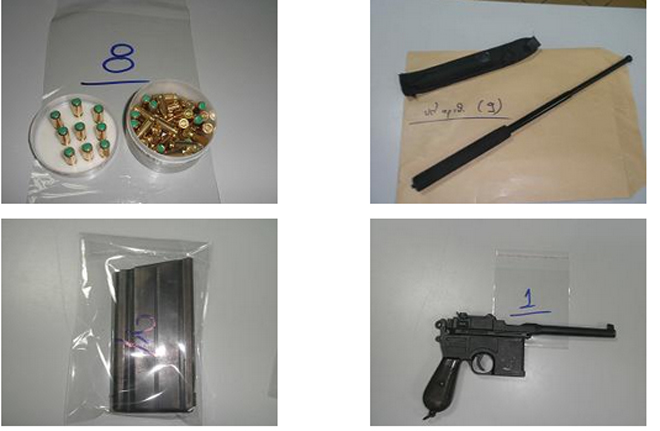 Σε έρευνα που ακολούθησε στο σπίτι του 39χρονου μέλους του σωματείου βρέθηκαν και κατασχέθηκαν ένα πιστόλι απομίμηση, πενήντα αβολίδωτα φυσίγγια, δύο φυσίγγια πυροβόλων όπλων, 23 κάλυκες πυροβόλων όπλων, γεμιστήρας πολεμικού τυφεκίου, πτυσσόμενη μεταλλική ράβδος και δίκοπο μαχαίρι με μήκος λάμας έξι εκατοστών.