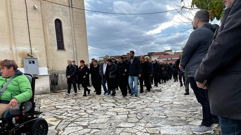 Σύσσωμη η τοπική κοινωνία, συγγενείς και γνωστοί της εκλιπούσης βρίσκονται στην εκκλησία με τραγικές φιγούρες τους γονείς και τα αδέρφια της ατυχής γυναίκας.