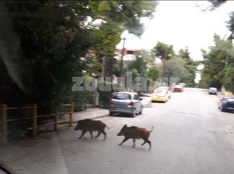 Τρία αγριογούρουνα έκαναν την εμφάνισή τους στη Δροσιά Αττικής, το μεσημέρι της Πέμπτης. Τα ζώα εντόπισε αναγνώστης του zougla.gr στην οδό Μαραθωνομάχων κοντά στην λεωφόρο Διονύσου.