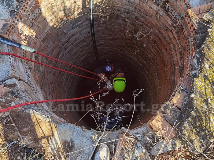 Με τον απαραίτητο εξοπλισμό και πολύ επιμονή οι άνθρωποι της 7ης ΕΜΑΚ κατάφεραν να απομακρύνουν το άτυχο ζώο που δεν επέζησε της πτώσης μέσα στο πηγάδι που ήταν γεμάτο με νερό.