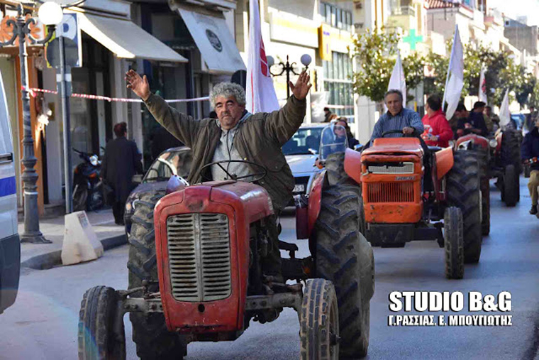 Εν συνεχεία έκαναν πορεία με τα τρακτέρ τους στην πόλη του Άργους.