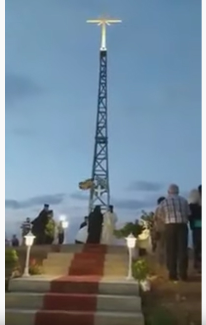 Ο τεράστιος, φωτεινός Τίμιος Σταυρός έχει τοποθετηθεί σε περίοπτη θέση στον περιβάλλοντα χώρο της Ιεράς Μονής Αγίας Σκέπης – Αγίας Παρασκευής Νέας Βύσσας στα ελληνοτουρκικά σύνορα.