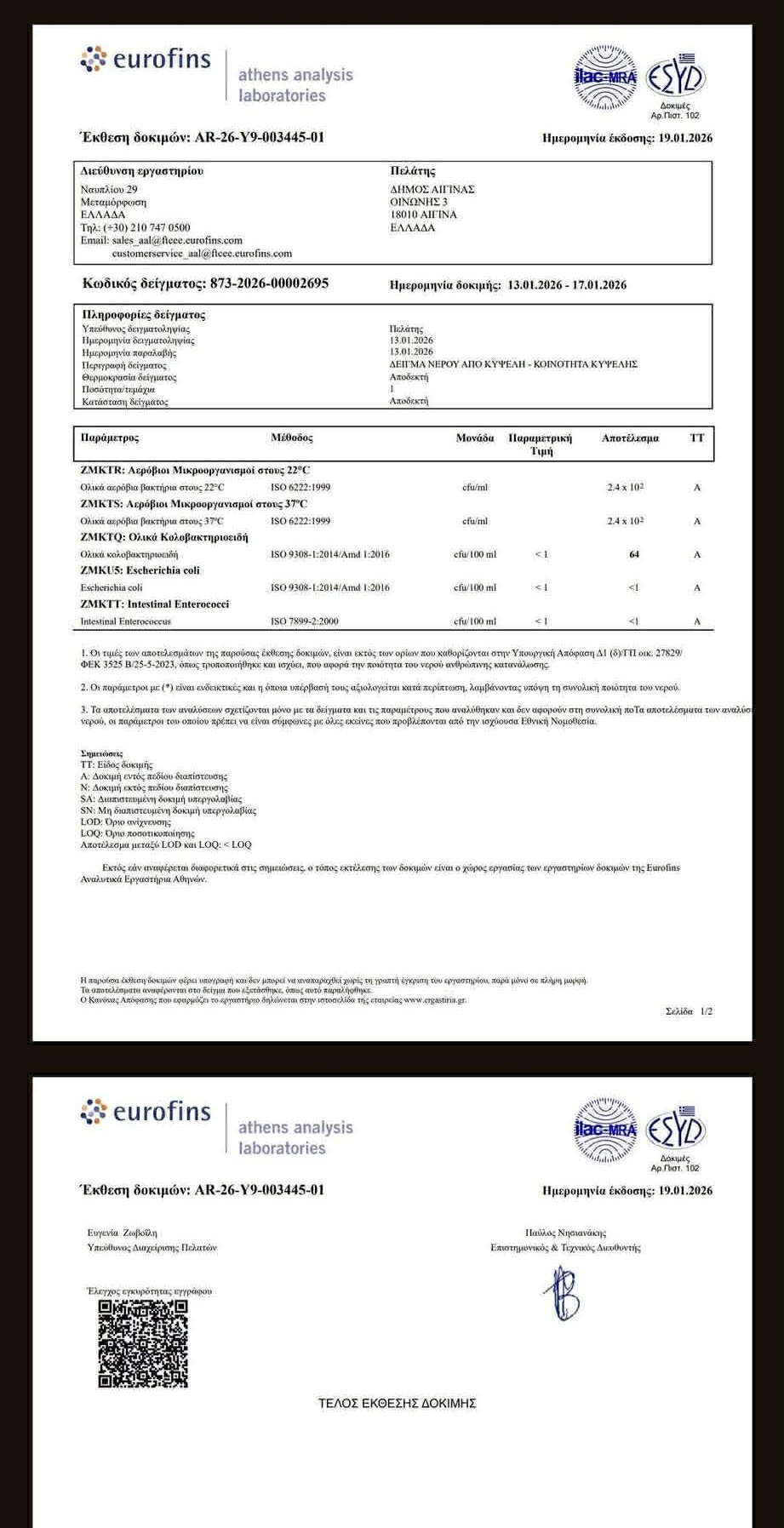 Παράλληλα, οι μικροβιολογικές αναλύσεις εντόπισαν έξι σοβαρά κολοβακτηρίδια, αποδεικνύοντας ότι το νερό δεν πληροί ούτε τις στοιχειώδεις προδιαγραφές ασφαλείας. Τα αποτελέσματα των ελέγχων έχουν δημοσιευθεί σε επίσημους ιστότοπους και μέσα ενημέρωσης, άρα κανείς δεν μπορεί να ισχυριστεί άγνοια.