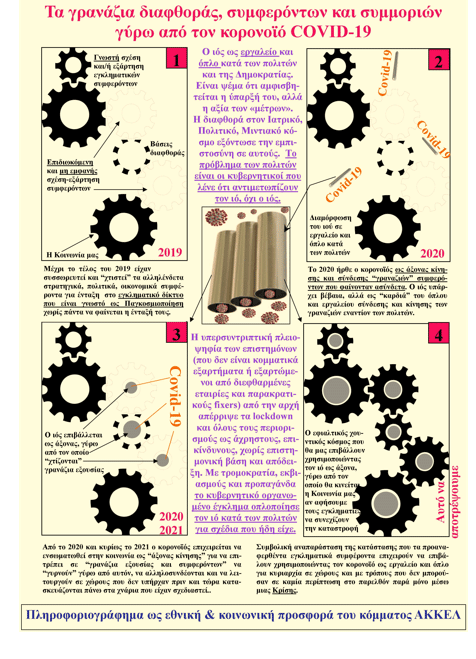 »Οι πολίτες έχουν υγιή και απόλυτα δικαιολογημένη επιφύλαξη απέναντι στους κυβερνώντες λόγω του εξαιρετικά “ανέντιμου πρότερου βίου” σε σχέση με τη διαφθορά, στην οποία είναι βουτηγμένη η κυβέρνηση, και απλώς δεν τους εμπιστεύονται. Η ακαδημαϊκή, ιατρική, πολιτική διαφθορά μαζί με τη διαφθορά στα Media, που κυριαρχούν στην Ελλάδα για δεκαετίες, έχουν συντονιστεί και ολοκληρωθεί με τρόπο ώστε να καταργούν το Σύνταγμα και τις διεθνείς προστασίες ανθρωπίνων δικαιωμάτων. Η αντίσταση των πολιτών είναι αντίσταση κατά της διαφθοράς. Η διαφθορά τώρα εκφράζεται με την απόπειρα υποχρεωτικής επιβολής εμβολιασμού και διακρίσεων κατά πολιτών.