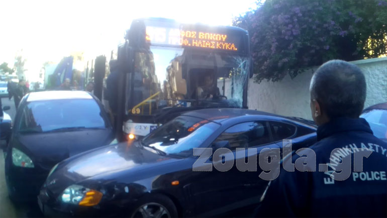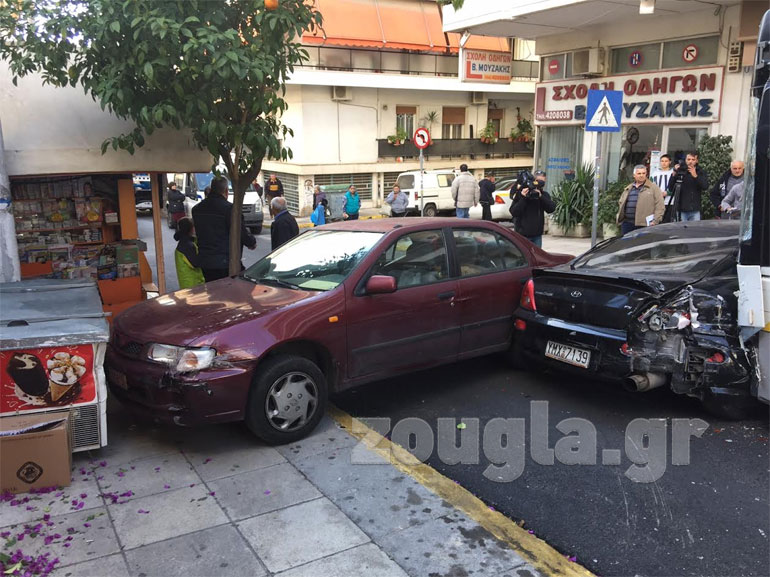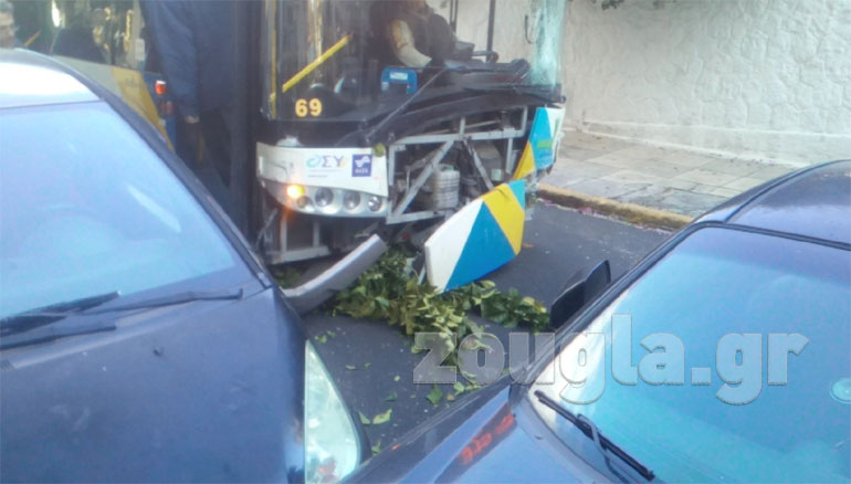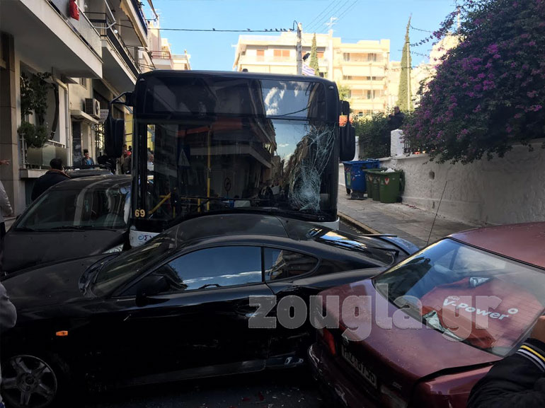 Το λεωφορείο σταμάτησε την τρελή του πορεία, όταν προσέκρουσε σε δύο παρκαρισμένα αυτοκίνητα, τα οποία του έφραξαν τον δρόμο.