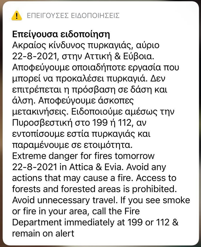 Σχετική ειδοποίηση απέστειλε και το 112: