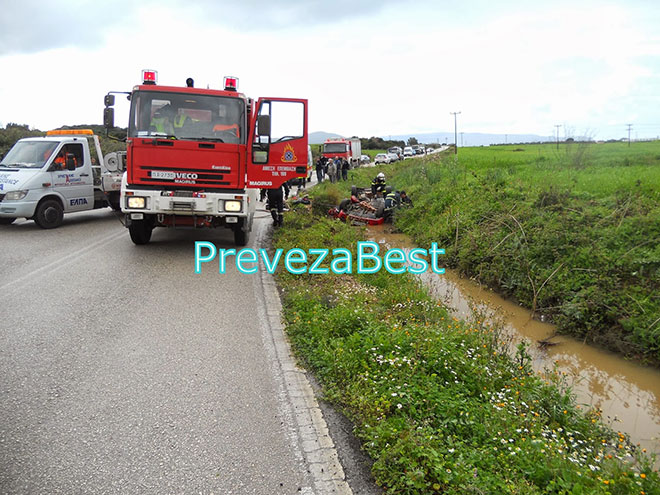 Σύμφωνα με τις πρώτες πληροφορίες, Ι.Χ. αυτοκίνητο εξετράπη της πορείας του στον δρόμο μετά την 131 ΣΜ του Aκτίου προς Λευκάδα με αποτέλεσμα να πέσει μέσα σε αρδευτικό χαντάκι.