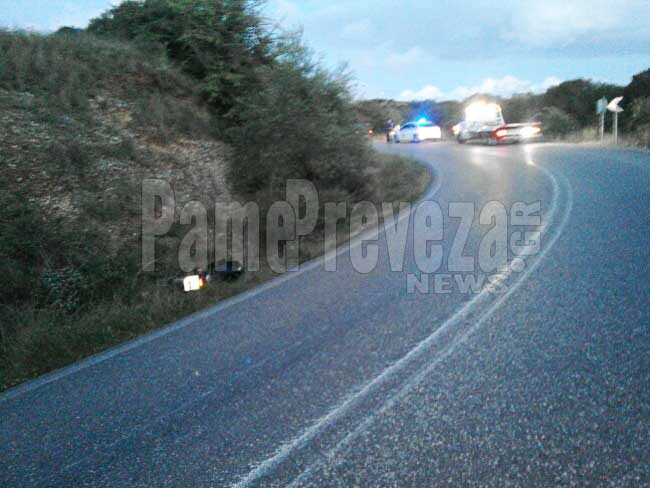 Σε γνωστό πλέον σημείο, όπου έχουν σημειωθεί στο παρελθόν αρκετά τροχαία, δίκυκλο με κατεύθυνση προς Πρέβεζα, ξέφυγε της πορείας του και έπεσε πάνω σε Ι.Χ. στο αντίθετο ρεύμα.