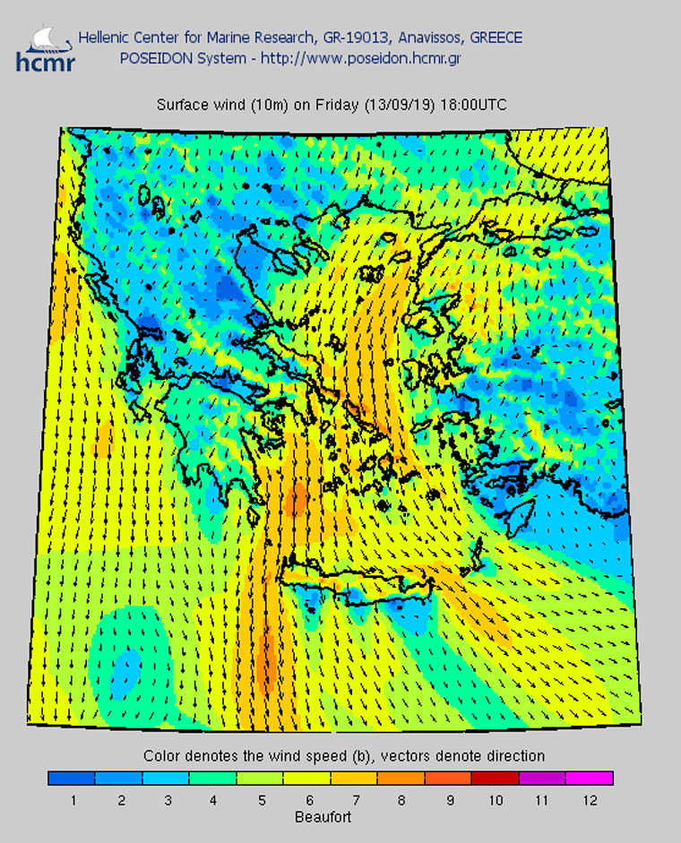Άνεμοι: Από βόρειες διευθύνσεις 5 με 6, στα ανατολικά 7 με 8 μποφόρ.