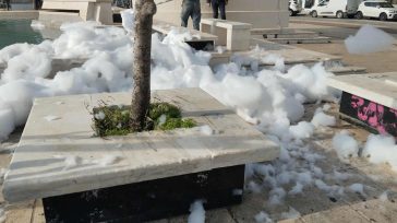 Ήταν μια διαφορετική εικόνα, που θύμιζε έντονη χειμωνιάτικη χιονόπτωση, εξ αιτίας μεγάλης ποσότητας απορρυπαντικού, που έριξαν άγνωστοι κατά τη διάρκεια της νύχτας στο συντριβάνι