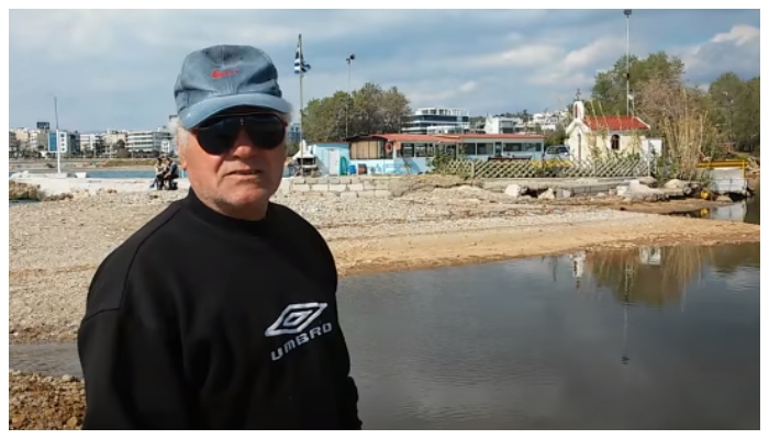 “Το απόγευμα η κατάσταση χειροτερεύει” λέει ο Αλέξανδρος, συχνός επισκέπτης στο λιμανάκι των ψαράδων. “Έχει εγκλωβιστεί το πετρέλαιο εδώ μέσα. Περνάει από τίποτα συνεργεία, βενζινάδικα; Είναι μεγάλη η ποσότητα, πιθανότατα είναι από πλυσίματα μηχανών. Έχουμε εδώ τα παπάκια του συλλόγου και έρχονται και άλλα πιο άγρια, έρχονται χελώνες… Εδώ δεν μπορεί να καθίσει ο άνθρωπος πόσο μάλλον αυτά τα ζωντανά…Το ρέμα ξεκινάει από την Ηλιούπολη, περνάει μέσα από το πρώην αεροδρόμιο και καταλήγει στη θάλασσα”.