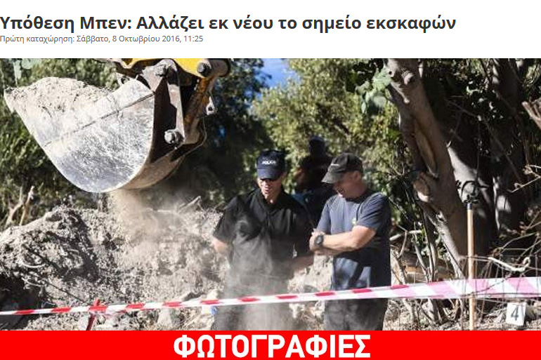 Ο Cousins είπε ακόμη πως η νέα έρευνα διεξάγεται έπειτα από πληροφορία ότι ο Μπάρκας προχωρούσε σε εκχέρσωση του εδάφους, σε περιοχή πολύ κοντά από εκεί που έπαιζε ο Μπεν, την ημέρα της εξαφάνισής του.