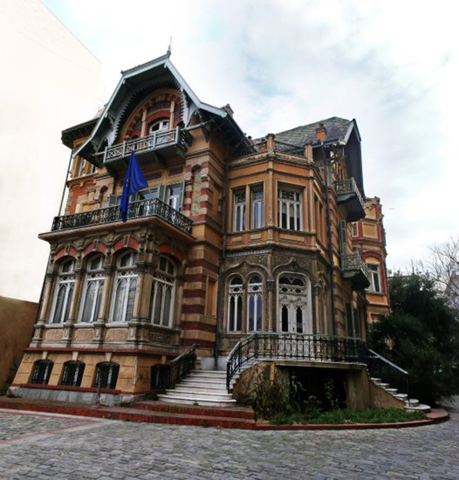 Το αρχοντικό χτίστηκε μεταξύ 1893 και 1895 από τον περίφημο Ιταλό αρχιτέκτονα Πιέρο Αριγκόνι και είναι αντιπροσωπευτικό δείγμα του τύπου της εξοχικής κατοικίας που υιοθετήθηκε στη Θεσσαλονίκη με επιδράσεις από τις βίλες των Βιενέζων μεγαλοαστών.