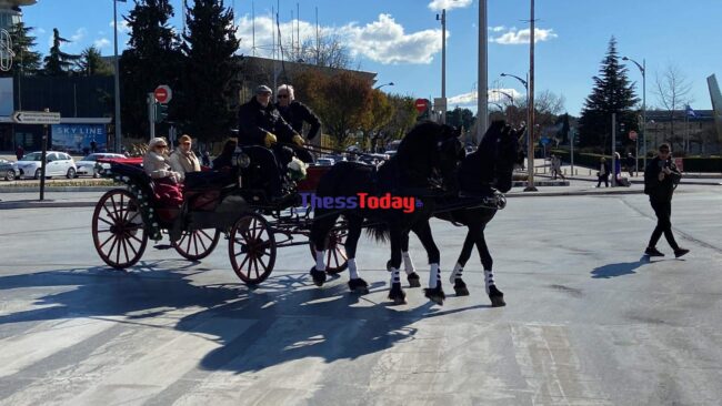 Ένα μοναδικό υπερθέαμα είχαν την ευκαιρία να παρακολουθήσουν σήμερα (3/2) Θεσσαλονικείς και τουρίστες, καθώς 30 άλογα με άμαξες κάλπαζαν σε κεντρικούς δρόμους της Θεσσαλονίκης.