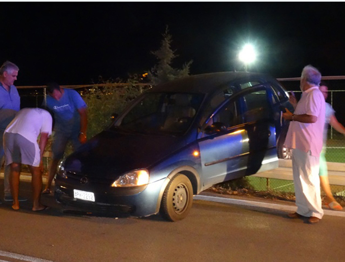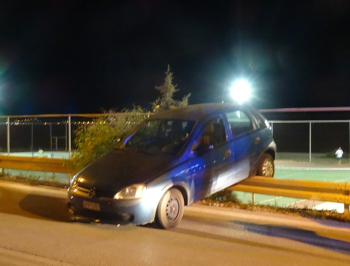 Μια κοπέλα ήταν η οδηγός του Οpel Corsa η οποία και έχασε τον έλεγχο του αυτοκινήτου της όταν πετάχτηκε σκύλος στη μέση του δρόμου και αυτή προσπάθησε να τον αποφύγει. Η ενέργεια αυτή είχε ως αποτέλεσμα να «καβαλήσει» με το όχημά τις προστατευτικές μπάρες. Η κοπέλα ευτυχώς δεν χτύπησε, ενώ στο σημείο μετέβη περιπολικό της Τροχαίας για να καταγράψει το συμβάν και να κλείσει ένα κομμάτι της κυκλοφορίας στη γέφυρα, μέχρι να φτάσει γερανός για να απομακρύνει το όχημα.