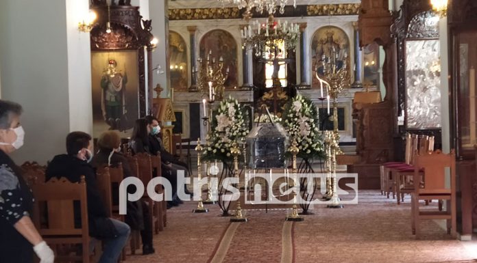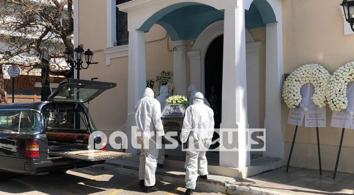 Μάσκες φορούσαν και τα μέλη της οικογένειάς του, δίπλα στο φέρετρο, ενώ η εξόδιος ακολουθία, που τελέστηκε από τον π. Αλέξιο Αναγνωστόπουλο, ολοκληρώθηκε μέσα σε 15 λεπτά.