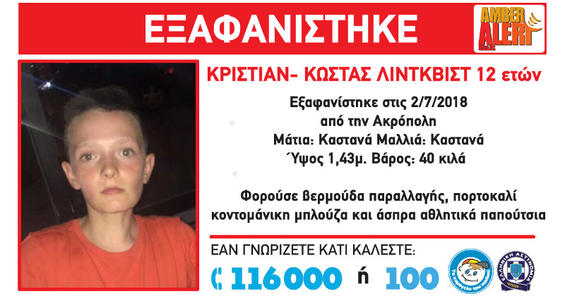Ο Κρίστιαν- Κώστας Λίνγκβιστ εξαφανίστηκε τα μεσάνυχτα της Κυριακής, από την περιοχή της Ακρόπολης, ενώ «Το Χαμόγελο του Παιδιού» ενημερώθηκε σχετικά το μεσημέρι της Δευτέρας.