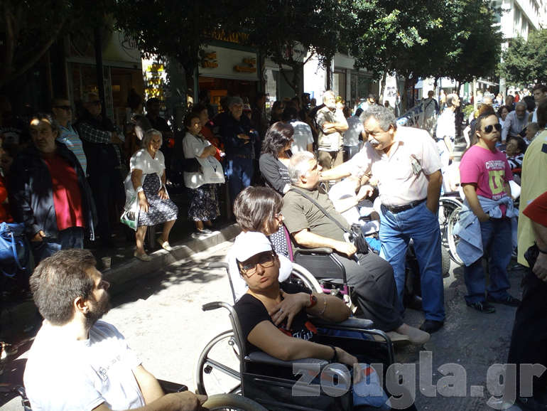 Παράσταση διαμαρτυρίας για τα δικαιώματα των ΑμεΑ πραγματοποιήθηκε στις 12.30 το μεσημέρι στην είσοδο του Υπουργείου Οικονομικών.
