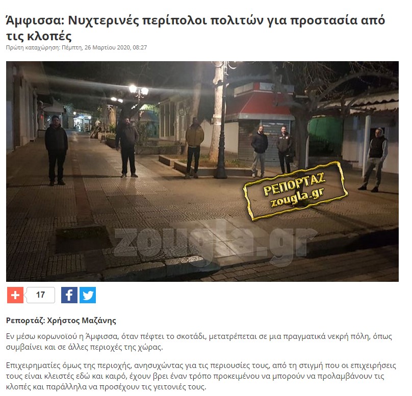 Όπως αναφέρει το fokidanews, γνωστοί πολίτες και επιχειρηματίες της Άμφισσας που περπατούσαν στο κέντρο της πόλης δέχθηκαν έλεγχο από αστυνομικούς.
