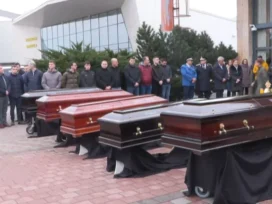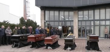 Τα φέρετρα των 7 αδικοχαμένων οπαδών του ΠΑΟΚ