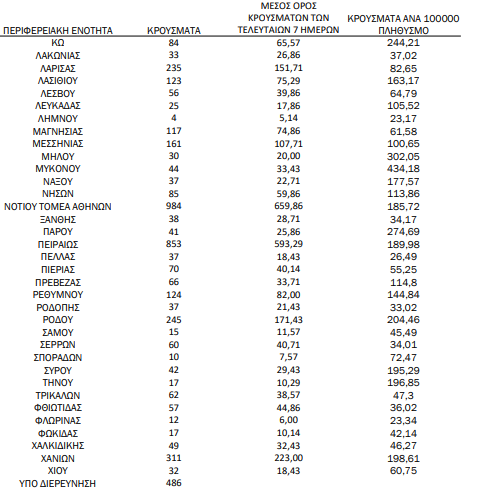 Η γεωγραφική κατανομή των περιστατικών είναι η ακόλουθη:
