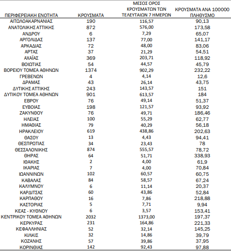 Υπενθυμίζεται πως τα περισσότερα σε αριθμό περιστατικά που είχε καταγράψει ο ΕΟΔΥ μέχρι σήμερα σε μία ημέρα ανακοινώθηκαν την Τρίτη 4 Ιανουαρίου 2022, όταν εντοπίστηκαν 50.126 περιπτώσεις σε ένα 24ωρο. Επίσης, ο μεγαλύτερος αριθμός θανάτων εξαιτίας του ιού σε ένα 24ωρο καταγράφηκε το Σάββατο 14 Δεκεμβρίου 2021, όταν έχασαν τη ζωή τους 130 ασθενείς.