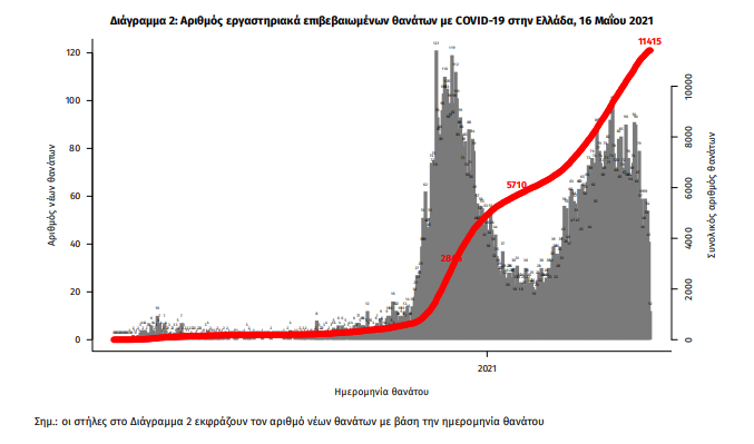 Οι νέοι θάνατοι ασθενών με COVID-19 είναι 50, ενώ από την έναρξη της επιδημίας έχουν καταγραφεί συνολικά 11.415 θάνατοι. Το 95.2% είχε υποκείμενο νόσημα ή/και ηλικία 70 ετών και άνω.