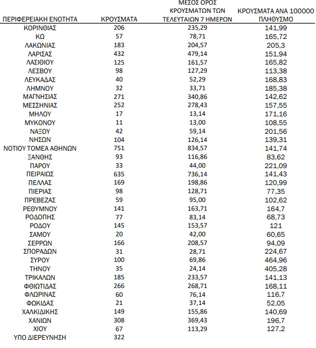 Η γεωγραφική κατανομή των περιστατικών είναι η ακόλουθη: