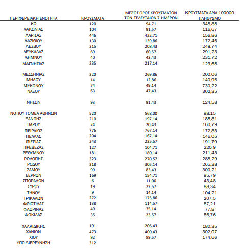 Η γεωγραφική κατανομή των περιστατικών είναι η ακόλουθη: